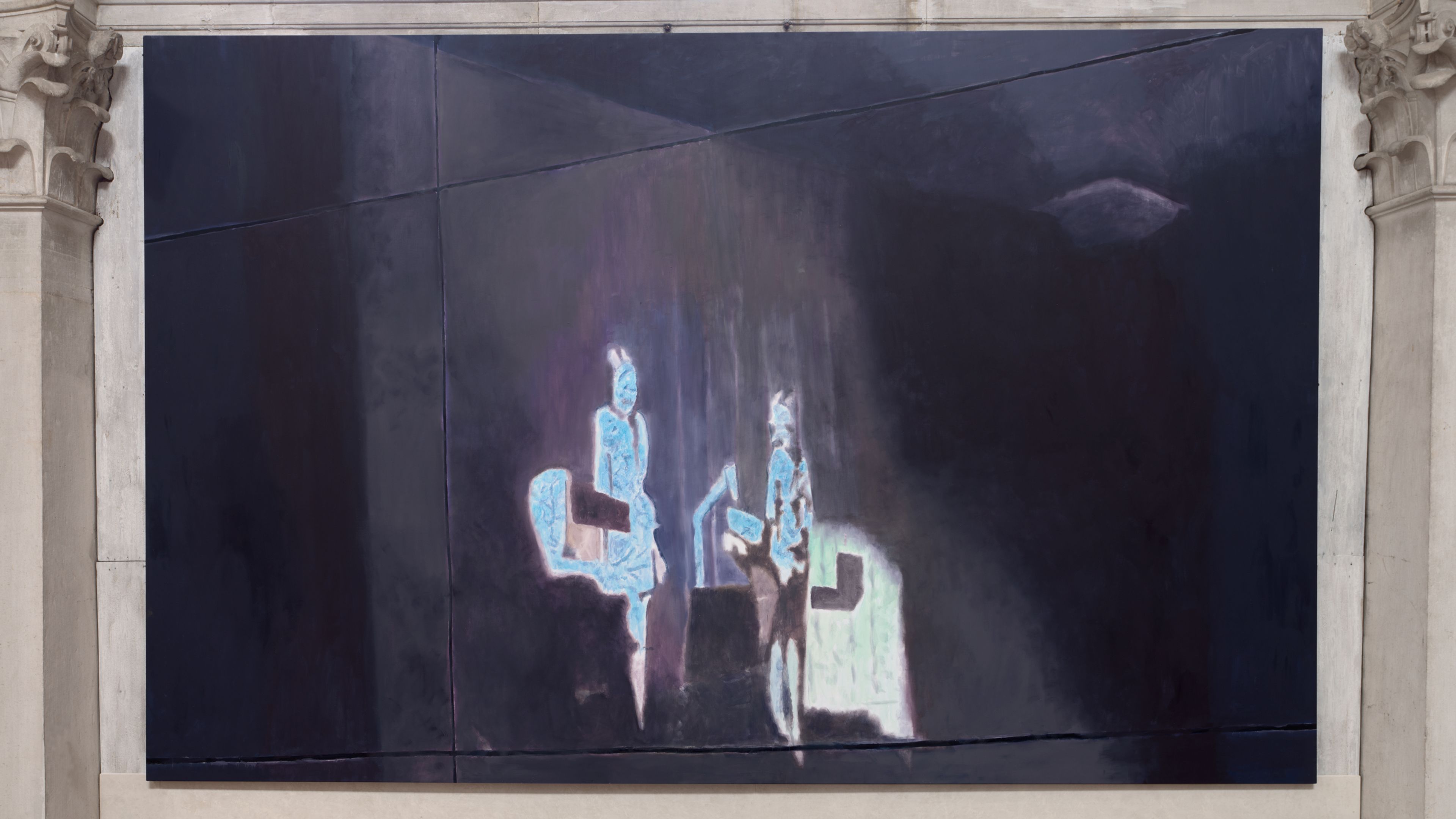 Luc Tuymans presents a new commission for the Basilica di San Giorgio Maggiore in Venice. The largest canvases produced by the artist to date, the two new paintings will occupy walls which usually feature Tintoretto’s Last Supper (1592–1594) and The Israelites in the Desert (c. 1593), while they undergo restoration. Unlike Tintoretto’s masterworks, Tuymans’s paintings do not deal with biblical subject matter directly, but rather underscore a disjuncture between appearance and reality. The artist will also present a contemporary illuminated manuscript. The presentation is commissioned by the Benedictine Community, led by Abbot Stefano Visintin osb, and Draiflessen Collection, and marks a return to Venice for Tuymans after his critically acclaimed retrospective, La Pelle, at Palazzo Grassi in 2019.