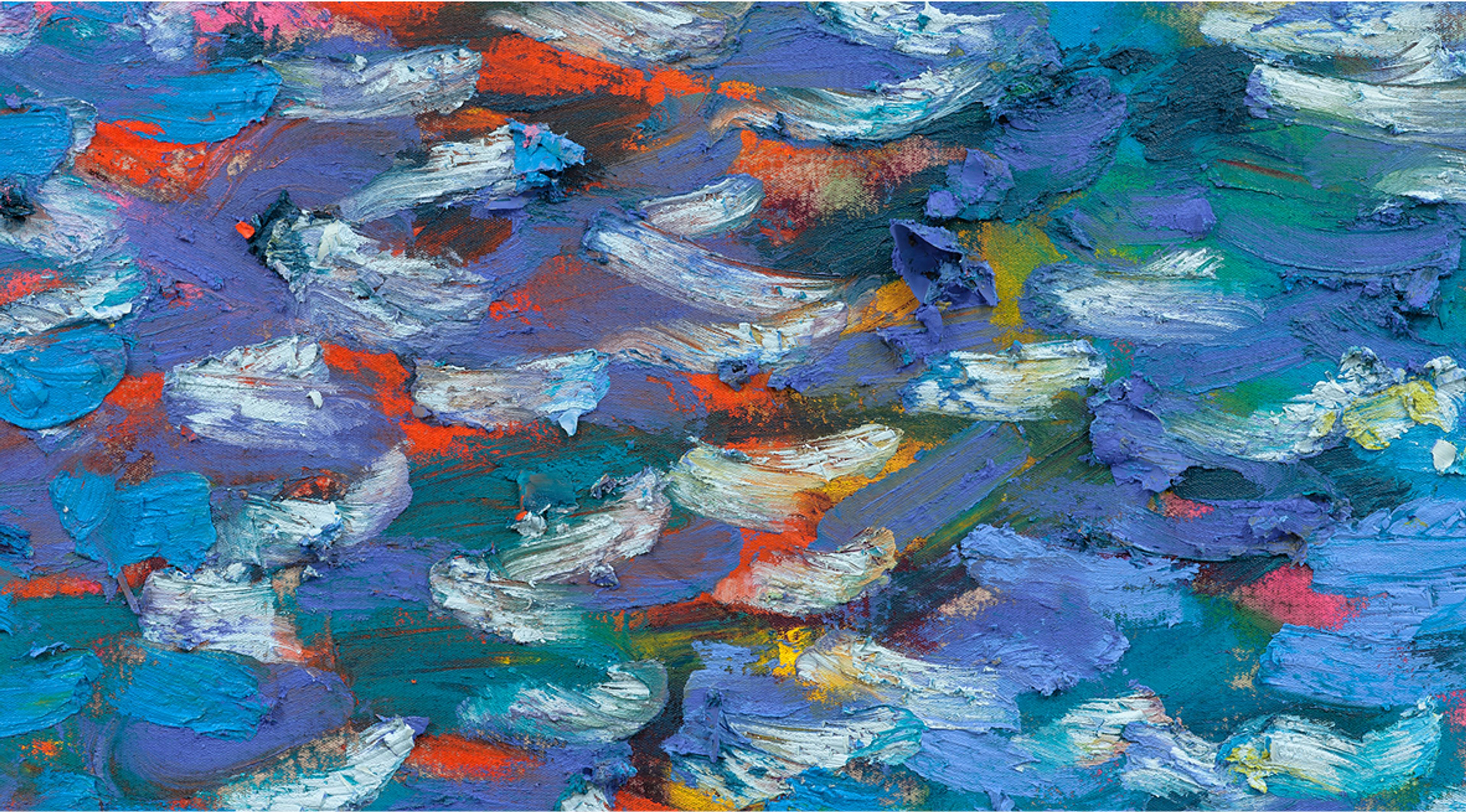 This present triptych is a new example of Murillo’s surge paintings—a body of work initiated by the artist in 2018 that represents an evolution in his studio practice. The composition is inspired in part by Monet’s paintings of water lilies, which interest Murillo not just for their formal and historical significance, but also for their global commodification and circulation—a phenomenon that has also, counterintuitively, caused these artworks to become associated with a lowbrow notion of beauty.