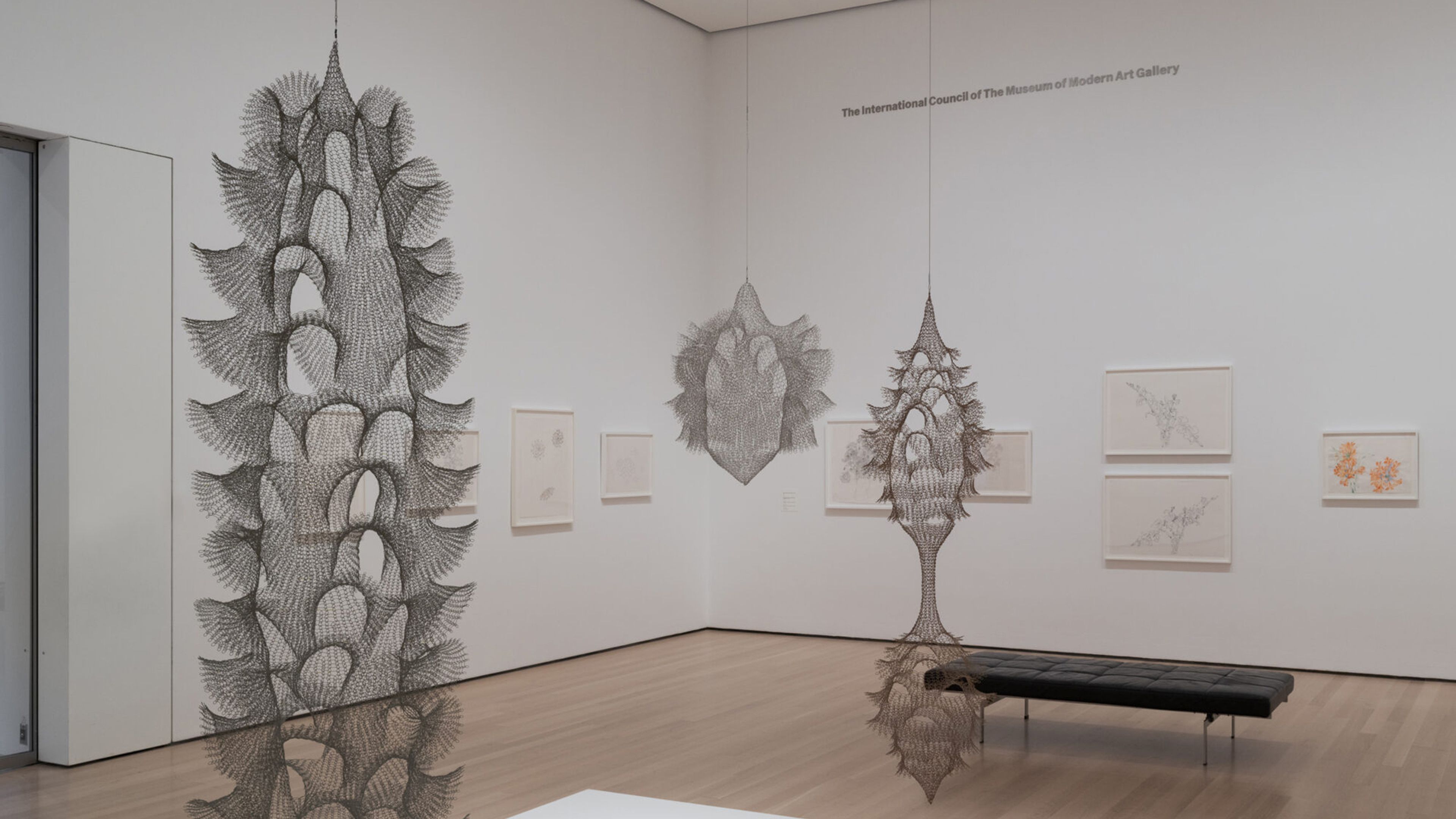 Installation view, Ruth Asawa: A Retrospective, The Museum of Modern Art, New York, 2025 © 2025 The Museum of Modern Art, New York. Photo by Jonathan Dorado. Artworks © 2025 Ruth Asawa Lanier, Inc.