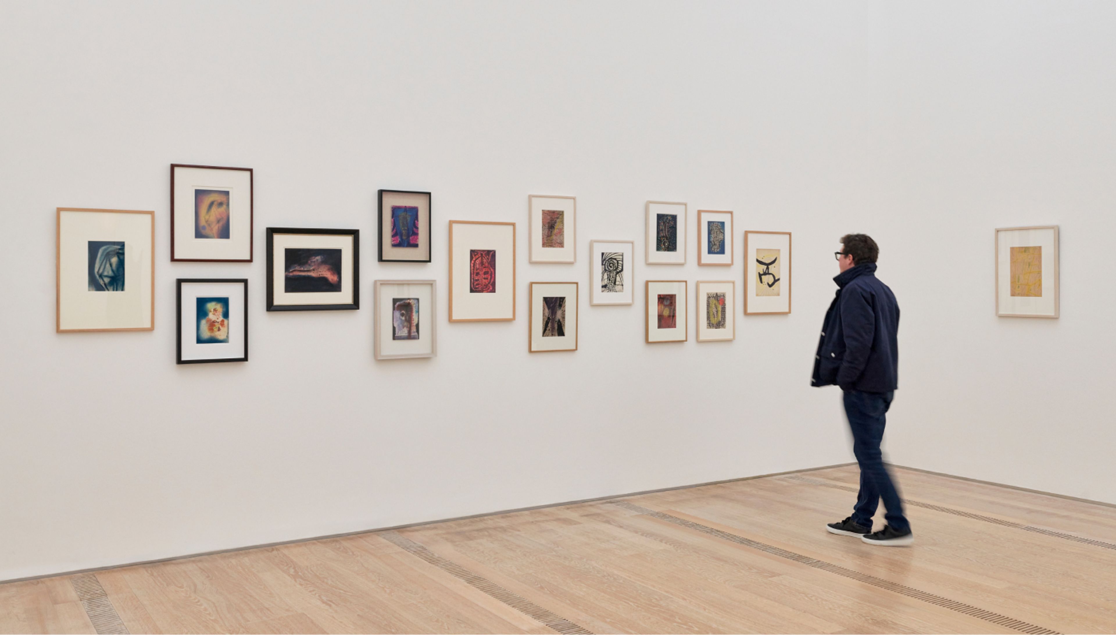 Installation view of works from the Every Day I Pray For Love series. In the exhibition Yayoi Kusama, Fondation Beyeler, Riehen/Basel, 2025. Photo by Mark Niedermann © YAYOI KUSAMA