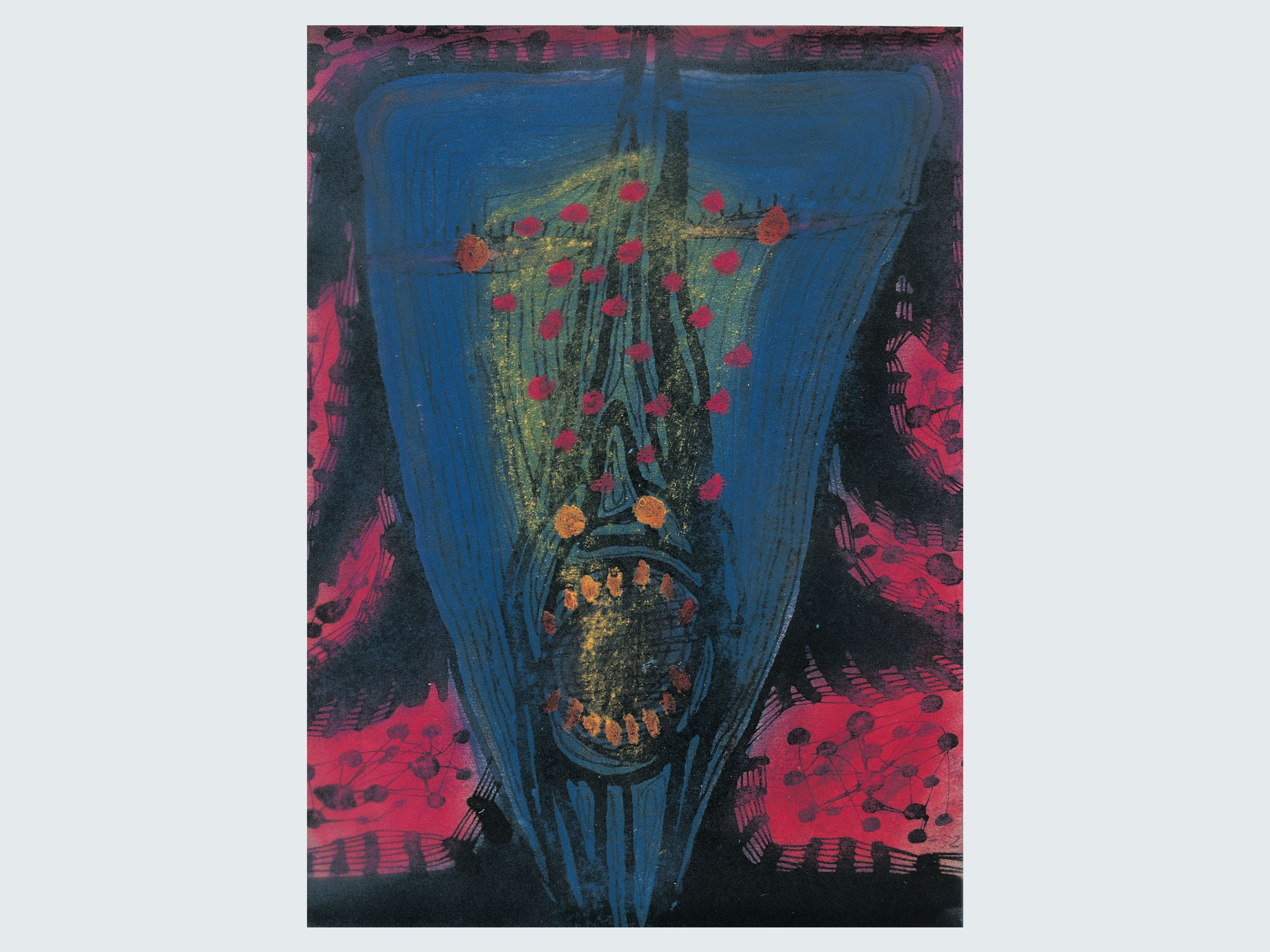 The retrospective traces Kusama’s extraordinary journey to her internationally celebrated status today, starting with rarely seen paintings and watercolors made in the early 1950s in her hometown of Matsumoto, Japan. While raised in an affluent family, Kusama, born in 1929, felt the impact of her parents’ unhappy marriage. “Perhaps triggered or at least exacerbated by these family tensions,” the curators note in the catalogue, “Yayoi, then not yet ten years old, began to suffer from perceptual changes that manifested themselves in auditory and visual hallucinations, which would later be diagnosed as an obsessive-compulsive disorder. At times she heard animals and plants speaking to her, at other times she saw auras around things or experienced how repetitive patterns of flowers or dots spread across furniture, her own body, the entire room, and beyond. By indefatigably capturing the images of her altered perception in drawings, perhaps to reassure herself of their reality, Kusama, according to her own assessment, laid the foundation for her very own artistic language.”