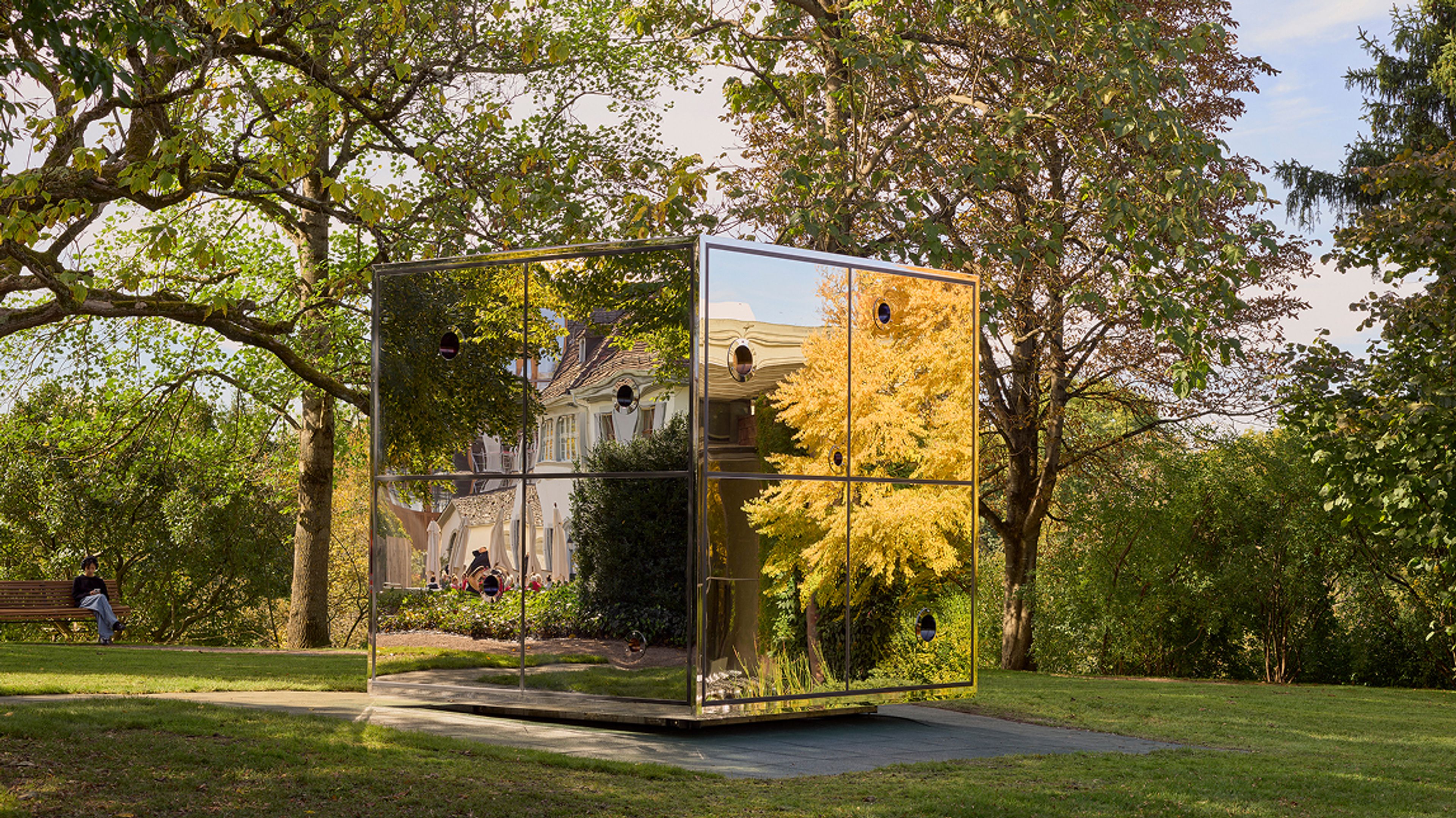 Installation view, Yayoi Kusama, Infinity Mirrored Room – The Hope of the Polka Dots Buried in Infinity Will Eternally Cover the Universe, 2025. In the exhibition Yayoi Kusama, Fondation Beyeler, Riehen/Basel, 2025. Photo by Mark Niedermann © YAYOI KUSAMA